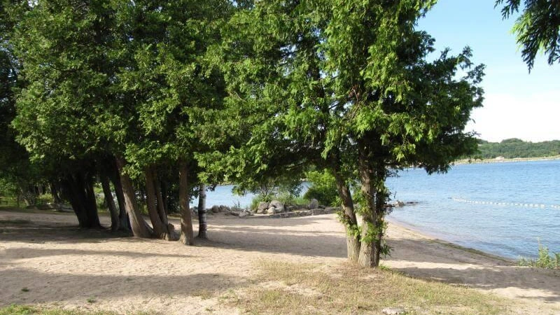 3mi E of Midland on Hwy 12, 1/2 mi E of Martyrs' Shrine on Ogden's Beach Rd. From Toronto, Hwy 11 or 400 to Barrie, Hwy 27 and 93 from Barrie to Midland, and Hwy 12 from Midland to Ogden's Beach Rd, past Martyrs' Shrine. Turn N (or L) on Ogden's Beach Rd and continue 1 mi to camp.