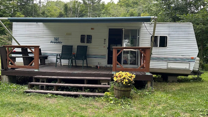 Waterfront cottage and waterview trailers for rent, WiFi. Child-friendly, 6 minutes from Bon Echo Provincial Park.rnrnYou will enjoy lots of trees, water views and a sandy beach nestled on a quiet lake. While relaxing in this natural setting, you won't have to give up conveniences like 30-amp electricity/water, clean washrooms, hot showers and WiFi. This park appeals to seniors, families, kids or anyone looking for a fun but quiet nature-oriented escape.rnrnYou and your family will never run out of new adventures and places to explore in the area. Boating, canoeing, fishing, hiking, ATVing, cave exploration, historical boat tours, pioneer museums and golf are just some of the many activities available.rnrnNo camping equipment? Sleep in our fully finished cottage or cozy camper-trailers for rent. Unlike some other places, which can feel like noisy and crowded "trailer cities," you will inhale clean air and feel the peace.