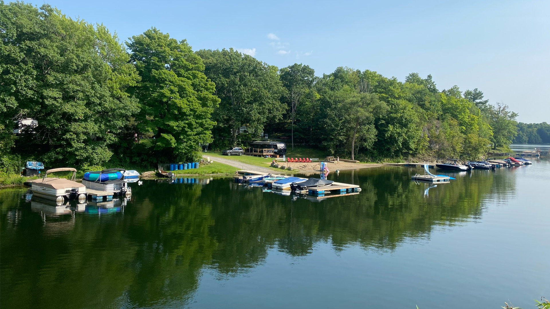 From the 401 eastbound, take Hwy 15 north for 25 km, turn left on Burnt Hills Rd, travel 4.7 km to the campground. From the 401 westbound, take Hwy 15 north for 25 km, turn left on Burnt Hills Rd, travel 4.7 km to the campground.