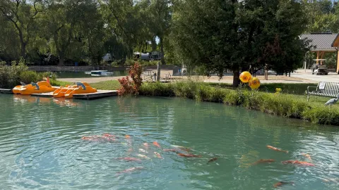 Country Gardens is situated in the countryside, just outside Kitchener. We have overnight and seasonal campsites awaiting you. Throughout the park, you will find mature trees, a creek, ponds and campers to call friends. On a hot day, enjoy a dip in the outdoor heated pool or the swimming pond with inflatable water toys. We are home to the largest koi pond in the region. Come and feed these colourful fish. There are planned activities for campers of all ages. Participate in special events such as Halloween, Augtoberfest and many more. Join in weekly activities such as bingo, euchre, horseshoes and aquafit. Try out our mini-golf, pedal karts and paddleboats. Enjoy a meal, a scoop of ice cream, or some candy at our snack bar. We also have specials, like Friday fish & chips. If you are looking for day trips, visit nearby St. Jacobs, Stratford and the Kitchener-Waterloo area.